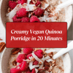 This 20-Minute Creamy Quinoa Porridge is a comforting and nutritious vegan breakfast that’s both satisfying and delicious. Made with coconut milk and naturally sweetened with maple syrup, it’s perfect for a cozy morning or a quick meal any time of day.