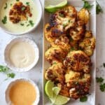 - Serve: Once crispy and golden, serve the cauliflower wings warm with lemon or lime wedges and your choice of vegan aioli, cashew queso, or chimichurri sauce.