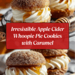 These Apple Cider Whoopie Pie Cookies with Caramel combine the warm spices of autumn with a tender cookie and a rich, creamy caramel filling. Perfect for seasonal gatherings or a cozy treat, these cookies offer a delightful balance of soft texture and sweet spice.
