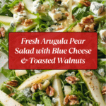 A fresh and vibrant Arugula Pear Salad combining peppery arugula, sweet ripe pears, crunchy toasted walnuts, and tangy blue cheese, tossed in a simple homemade apple cider vinegar dressing. Perfect as a light lunch or elegant side dish.