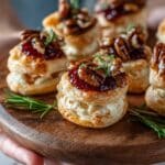 - Garnish and Serve: Allow the bites to cool for 5 minutes, then garnish each with a small sprig of fresh rosemary for a festive presentation. Serve warm.