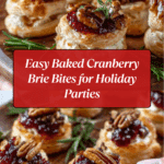 Baked Cranberry Brie Bites are delightful, bite-sized appetizers featuring creamy brie cheese and tart cranberry sauce nestled in flaky puff pastry. Topped with optional candied pecans for crunch and fresh rosemary for aroma, these elegant treats are perfect for holiday gatherings or any festive occasion.