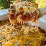 Beef Lombardi Casserole is a comforting, hearty dish combining savory ground beef simmered with tomatoes and garlic, creamy noodles mixed with sour cream and cream cheese, and topped with melted cheddar cheese. Baked to bubbly perfection, this casserole makes for a perfect family dinner or potluck dish.