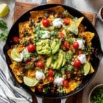 - Garnish and Serve: Remove the skillet from the oven. Sprinkle with the dark green parts of the green onions, fresh cilantro, diced tomatoes, and avocado. Serve hot with dollops of sour cream on the side, if desired.