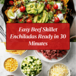 Beef Skillet Enchiladas offer a delicious twist on a classic Mexican favorite. This one-pan dish combines seasoned ground beef, vegetables, and tortillas baked in a rich enchilada sauce topped with melted cheese. Perfect for a cozy weeknight meal that’s both quick and satisfying.