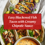 These Blackened Fish Tacos deliver a burst of smoky, spicy flavor with perfectly seared white fish fillets coated in a flavorful blackening seasoning. Served on warm corn tortillas with crisp shredded cabbage, fresh cilantro, crumbled cotija cheese, and a creamy chipotle-lime sauce, these tacos are a delicious and vibrant meal perfect for a quick weeknight dinner or weekend gathering.