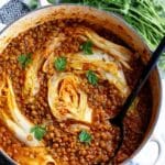 This Braised Cabbage & Lentils recipe combines tender charred napa cabbage with fragrant red curry-spiced lentils simmered in creamy coconut milk. A hearty, flavorful vegan dish perfect for a comforting meal served over rice.