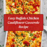 This Buffalo Chicken Cauliflower Casserole is a flavorful, low-carb dish that combines shredded chicken and riced cauliflower in a creamy buffalo sauce and cheese blend, baked to bubbly perfection. It’s an easy, comforting casserole perfect for fans of spicy buffalo flavors looking for a wholesome meal.