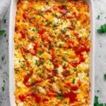 Keywords: buffalo chicken casserole, cauliflower casserole, low carb casserole, keto buffalo chicken, creamy buffalo chicken bake, healthy chicken casserole