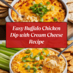 This Buffalo Chicken Dip with Cream Cheese is a creamy, spicy, and cheesy appetizer perfect for game days, parties, or casual gatherings. Made with shredded chicken, cream cheese, buffalo wing sauce, ranch dressing, and cheddar cheese, it’s baked until hot and bubbly, then garnished with green onions and served with celery sticks and crackers for dipping.