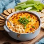 This Buffalo Chicken Dip with Cream Cheese is a creamy, spicy appetizer that’s perfect for game day or casual get-togethers. It combines shredded chicken with tangy buffalo sauce and melted cheese for a crowd-pleasing treat. Serve it warm with celery sticks and crackers for easy dipping.
