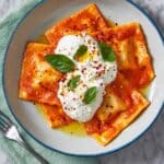 This Burrata Pasta is a simple yet elegant dish perfect for a quick dinner that feels special. Creamy burrata cheese paired with a homemade tomato sauce and fresh basil creates a flavorful, comforting meal in just 30 minutes.