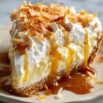 This Caramel Coconut Cream Pie combines a crispy graham cracker and coconut crust with a silky smooth coconut custard filling, topped with fluffy whipped cream, a luscious caramel drizzle, and a sprinkle of shredded coconut for extra texture and flavor. It’s a refreshing, tropical-inspired dessert perfect for any occasion.