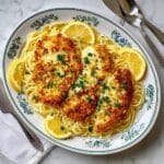 - Serve: Plate the chicken with the reheated pasta. Garnish each serving with chopped fresh parsley and a lemon wedge to squeeze over the top.