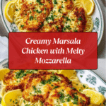Chicken Exquisito is a decadent Italian-inspired dish featuring tender, pounded chicken breasts breaded and pan-fried to golden perfection. The chicken is then smothered in a rich sauce made with garlic, brandy, Marsala wine, and chicken stock, topped with melted mozzarella cheese, and served alongside perfectly cooked pasta. Garnished with fresh parsley and a lemon wedge, this dish combines crispy textures and savory, aromatic flavors for an unforgettable meal.