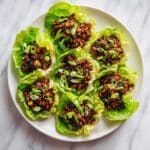 Delicious and fresh Chicken Lettuce Wraps featuring ground chicken sautéed with mushrooms, water chestnuts, garlic, and ginger, all tossed in a savory hoisin-soy sauce mixture. Served in crisp Bibb or butter lettuce leaves, these wraps are perfect for a light, flavorful meal or appetizer with customizable spicy options.
