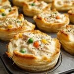 Keywords: chicken pot pie biscuit cups, chicken pot pie cups, biscuit chicken pot pie, easy chicken pot pie, mini pot pies, savory biscuit cups