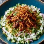Chicken Shawarma Crispy Rice Salad brings together the warm spices of Middle Eastern cuisine with a satisfying crunch from golden rice. This easy dinner recipe is fresh, flavorful, and perfect for a weeknight meal or casual gathering.