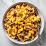 Keywords: chili mac, macaroni and cheese, ground beef chili, comfort food, baked pasta, cheesy chili pasta