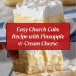Church Cake is a delightful, layered dessert featuring a moist banana muffin base topped with creamy pudding, tangy pineapple, and fluffy whipped topping. It’s an easy-to-make recipe perfect for gatherings and potlucks, delivering a sweet and refreshing treat everyone will enjoy.