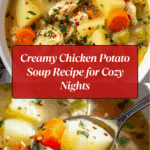 This comforting chicken soup with potatoes is a perfect hearty meal for chilly days. Packed with tender chicken, fresh herbs, and creamy cheddar, it warms you from the inside out. Easy to prepare and full of flavor, it’s a classic that everyone will love.