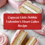 These Copycat Little Debbie Valentines Cakes are delightful white cake hearts layered with a fluffy marshmallow buttercream filling and coated in pink almond bark chocolate. Perfectly festive for Valentine’s Day, these cakes combine tender, moist cake with a creamy filling and a smooth, decorative chocolate shell.