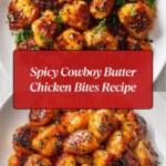 Cowboy Butter Chicken Bites are tender, boneless chicken breast pieces cooked to golden perfection and tossed in a rich, flavorful butter sauce infused with garlic, Dijon mustard, fresh lemon, smoked paprika, and herbs. This skillet-cooked dish is perfect as a savory appetizer or main course, delivering a delightful combination of zesty, smoky, and buttery flavors in every bite.