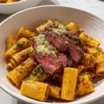Keywords: steak pasta, cowboy butter sauce, ribeye steak, creamy pasta, spicy pasta sauce, rigatoni recipe, dinner recipe