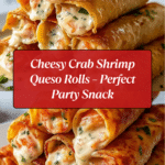 Crab Shrimp Queso is the ultimate party snack featuring a creamy, cheesy seafood filling made with shrimp, crab, Monterey Jack cheese, cream cheese, and queso dip, wrapped in flour tortillas and pan-fried until golden and crispy. This delicious appetizer is perfect for entertaining and guaranteed to be a crowd-pleaser.