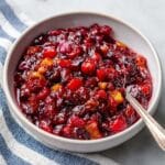 This Cranberry-Apple Chutney is a tangy and sweet condiment perfect for enhancing your holiday meals or adding a burst of flavor to sandwiches and cheese boards. Made with fresh cranberries, tart apples, warming spices, and toasted walnuts, this chutney combines a lovely balance of sweet, tart, and spicy flavors with a delightful texture.
