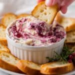 - Serve Warm. Remove from the oven and serve the hot cranberry brie dip immediately with crusty bread or crackers for dipping.