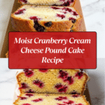 This Cranberry Cream Cheese Pound Cake is a festive and delicious treat perfect for the holiday season or any special occasion. It features a moist, buttery pound cake studded with fresh cranberries and a luscious cream cheese layer in the middle, finished with a sweet vanilla glaze. The combination of tart cranberries, tangy cream cheese, and rich cake creates a delightful balance of flavors and textures.