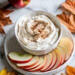 Keywords: cream cheese dip, apple dip, cinnamon dip, easy dip recipe, party snack, fruit dip, cream cheese dessert