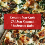 This Creamy Chicken Spinach and Mushroom Low Carb Oven Dish is a comforting and flavorful meal perfect for busy weeknights. With tender chicken breasts smothered in a creamy green onion sauce and topped with melted mozzarella, it’s both satisfying and easy to prepare.