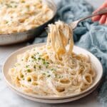 This creamy Alfredo Sauce with Half and Half is a rich and velvety pasta sauce made by combining butter, flour, half and half, and freshly grated Parmesan cheese. Served over cooked fettuccine noodles and garnished with parsley, it’s a quick and delicious way to enjoy a classic Italian-inspired dish with a lighter touch using half and half instead of heavy cream.