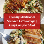 This creamy mushroom and spinach orzo is a comforting and flavorful one-pan meal perfect for any night of the week. Tender orzo pasta is cooked in a rich blend of broth and cream, paired with sautéed mushrooms and fresh spinach for a satisfying dish.