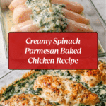 This Creamy Spinach Parmesan Baked Chicken is a comforting and flavorful dish perfect for weeknight dinners or special occasions. Tender chicken breasts are baked in a rich, garlicky cream sauce with fresh spinach and Parmesan cheese, creating a velvety, cheesy delight.
