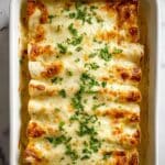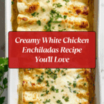A comforting and creamy white chicken enchiladas recipe featuring tender shredded chicken, a rich homemade white sauce, and a blend of Monterey Jack and cheddar cheeses. Perfectly baked for a golden, bubbly finish, this dish is easy to prepare and ideal for meal prep or entertaining with delicious Southwestern flavors.