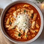 This Crockpot Chicken Parmesan Soup is a comforting and hearty dish that combines tender shredded chicken, rich tomato broth, creamy cheeses, and perfectly cooked pasta. Slow-cooked to maximize flavor, it delivers a classic Chicken Parmesan taste in a warm, satisfying soup form, perfect for cozy dinners.
