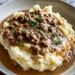 This delicious hamburger gravy served over creamy mashed potatoes is a comforting, hearty meal perfect for any night of the week. With simple ingredients and straightforward steps, it creates a savory sauce packed with flavor that pairs beautifully with fluffy potatoes.