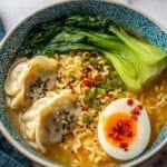 Store leftover ramen ingredients separately in airtight containers in the refrigerator for up to 2 days. To reheat, warm the broth and dumplings gently on the stove until hot, then cook fresh noodles and greens before serving. Soft-boiled eggs are best enjoyed fresh but can be kept peeled in the fridge for one day.
