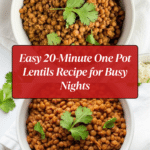 This Easy 20-Minute One Pot Lentils recipe is a flavorful and nutritious meal perfect for a quick and wholesome dinner. Brown lentils are simmered with aromatic spices and sautéed onions, creating a hearty dish that pairs wonderfully with rice or bread. Simple, comforting, and packed with protein and fiber, this lentil recipe is ideal for busy weeknights or meal prepping.