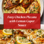 This Easy Chicken Piccata recipe features tender, pan-seared chicken breasts in a tangy lemon, caper, and butter sauce. Perfect for a quick yet elegant weeknight dinner, it is served best over freshly cooked pasta or your favorite side dishes.