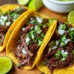 Keywords: Chuck roast tacos, slow cooker tacos, beef tacos, easy dinner recipe, shredded beef tacos, Mexican tacos, slow cooked beef, hearty tacos