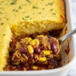 - Step 7: Bake for 35 to 40 minutes, or until the cornbread topping is cooked through and golden brown.