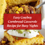 Easy Cowboy Cornbread is a hearty and comforting casserole that combines seasoned ground beef, beans, corn, and a cheesy cornbread topping. Perfect for weeknight dinners, it’s simple to make and full of bold flavors that the whole family will enjoy.