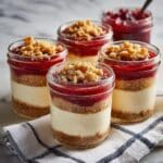 This Easy High Protein Cheesecake Jars recipe is TikTok’s favorite snack made healthier and packed with protein. Featuring a crunchy almond flour crust and a creamy, protein-enriched Greek yogurt and cream cheese filling, it’s a delicious and satisfying treat that can be prepared with or without baking. Perfect for quick, portion-controlled snacks or dessert jars.