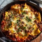 This Easy One Pot Skillet Lasagna is a delicious and convenient twist on traditional lasagna, combining hearty ground meat or a vegetarian alternative with marinara sauce, broken lasagna noodles, and a blend of cheeses, all cooked together in a single skillet for an effortless yet comforting meal.