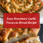 This Easy Rosemary Garlic Focaccia Bread is a perfect homemade Italian flatbread featuring a fluffy, golden crust infused with fresh rosemary and garlic. Soft on the inside with crisp edges, this recipe uses simple ingredients and an easy-to-follow method to create a delicious bread ideal as a snack, appetizer, or accompaniment to meals.