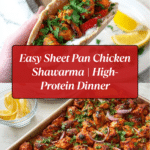 This easy and flavorful Sheet Pan Chicken Shawarma recipe features marinated chicken thighs baked to juicy perfection with caramelized red onions. Perfect for a high-protein, gluten-free dinner, it’s versatile for serving over rice, in pita bread, or atop fresh salads. Minimal cleanup and meal prep-friendly, this dish brings Mediterranean spices like cumin, paprika, and oregano together in one simple pan for a delicious family-friendly meal.